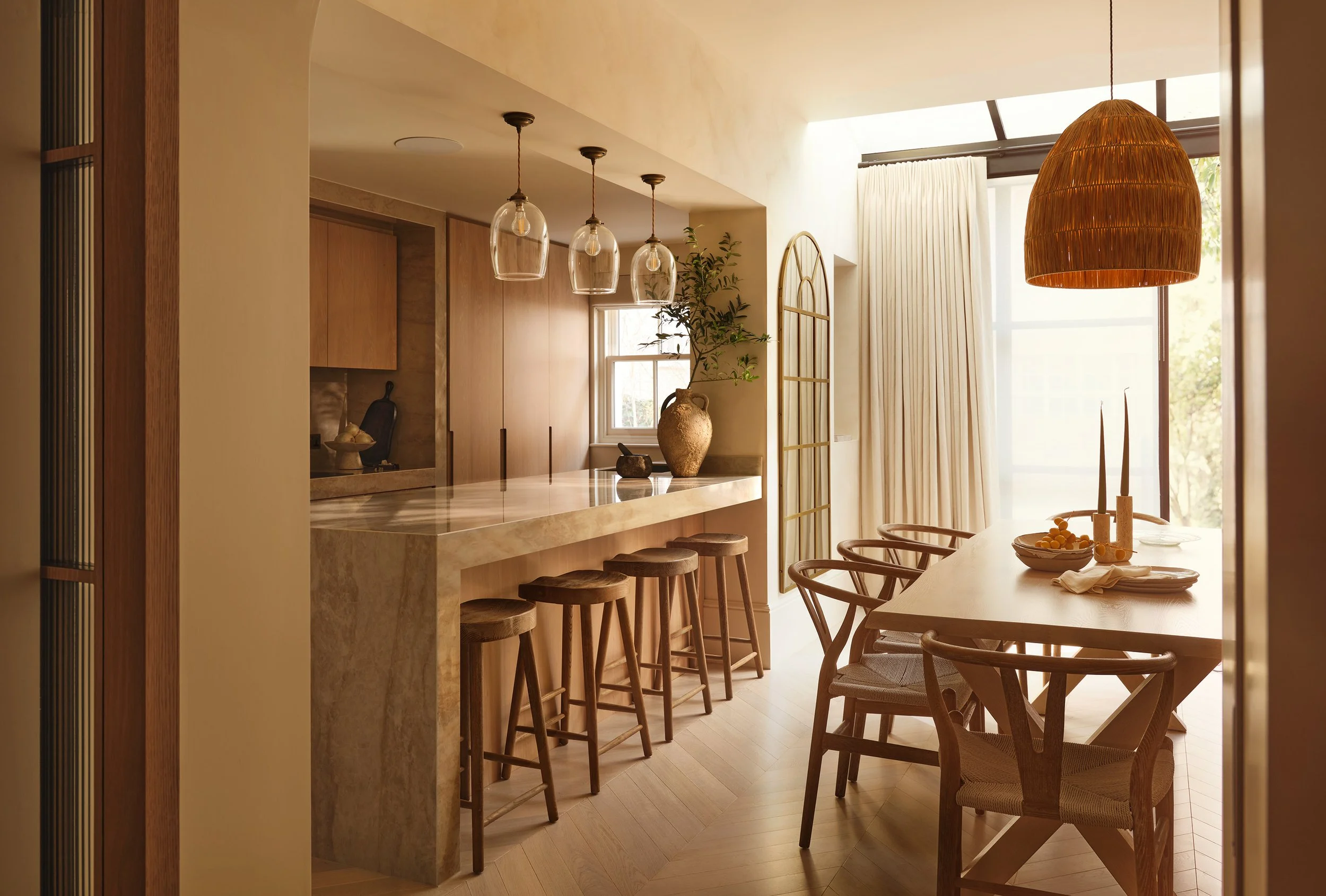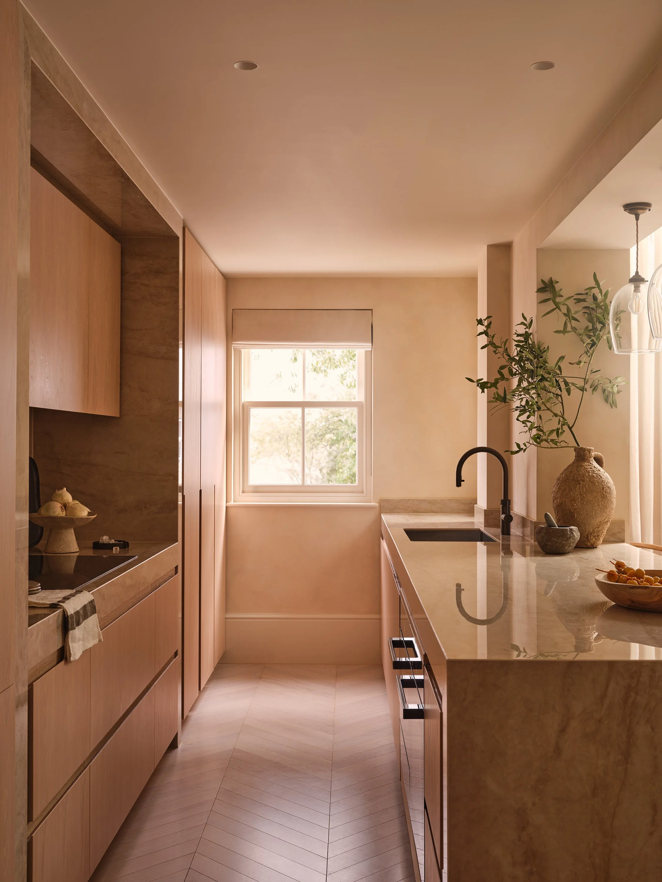 Our interiors are defined by restraint rather than excess. We favour natural materials, soft tonal palettes and bespoke elements that allow spaces to age beautifully over time. The result is interiors that feel grounded, personal and quietly resolved..